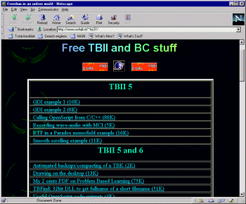 This site contains an extensive online ToolbookTips & Tricks Magazine, plus offers an innovative offline reader for all the online Toolbook discussions (both the Internet and Compuserve) over the last 5 years - fully indexed - downloadable and on CD.