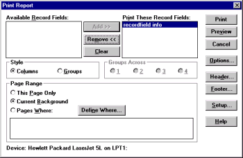 Toolbook also has a recordfield reporting facility, allowing you to produce longer text and database oriented reports.